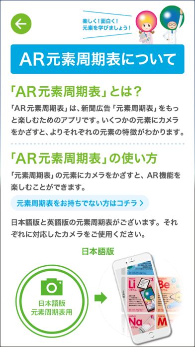- スマホを専用周期表にかざすと元素が解説されるアプリ