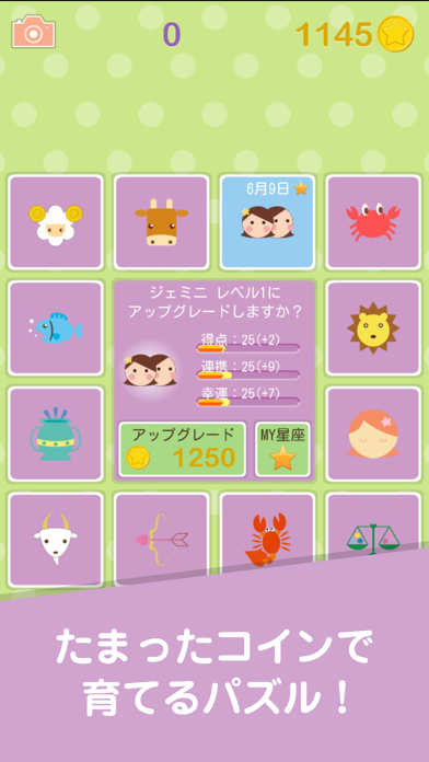 本アプリは、あなたの星座が鍵を握りスコアアップに繋がる12星座のパズルゲームです。