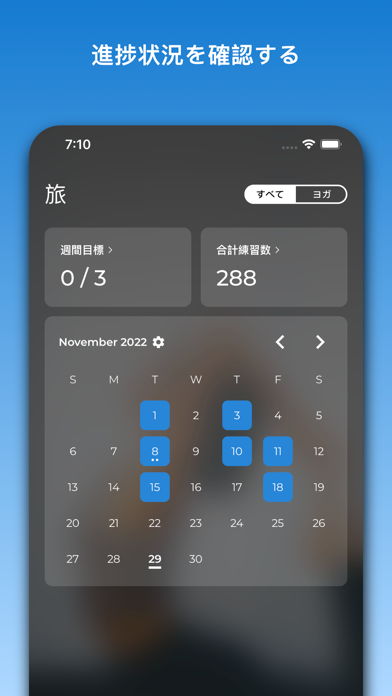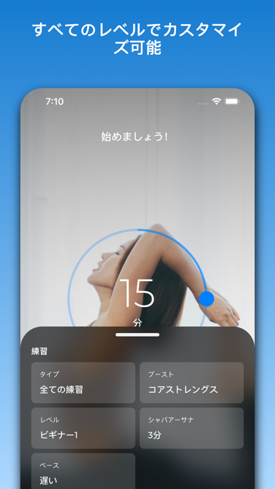 20の異なる練習領域に焦点を合わせて、自分だけのトレーニングを作成。背中の痛みをやわらげたいときは、背中を強化してストレッチする練習を選べばいいのです。特定の体の部分を強化したい方、特定の問題に対処したい方にとって、非常に便利な機能です。