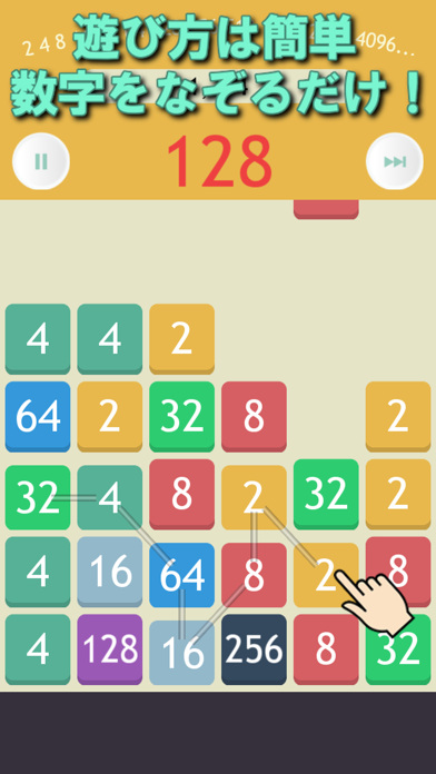 特殊なルールで数字を繋げて2048、4096と大きい数字を目指すパズルゲーム。従来の2048系のように同じ数字を組み合わせるのでなく、2+2+4=8という風に、数字の和が2の累乗となるようにするという点で大きく異なります。スピード感がありスリルを味わえるでしょう。