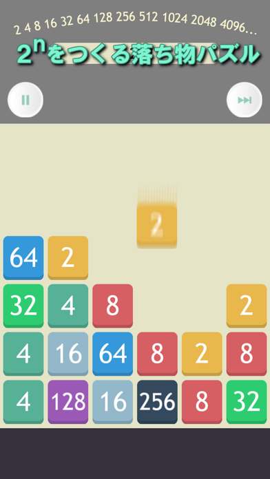 伝統的な2048パズルとは違い、このゲームは2の累乗になるよう足し算を行います。例えば、2+2+4=8といった具合に計算し、目標の数値を作り上げましょう。ちょっと思考力が遅いと、すぐにゲームオーバーになってしまうかもしれません。
