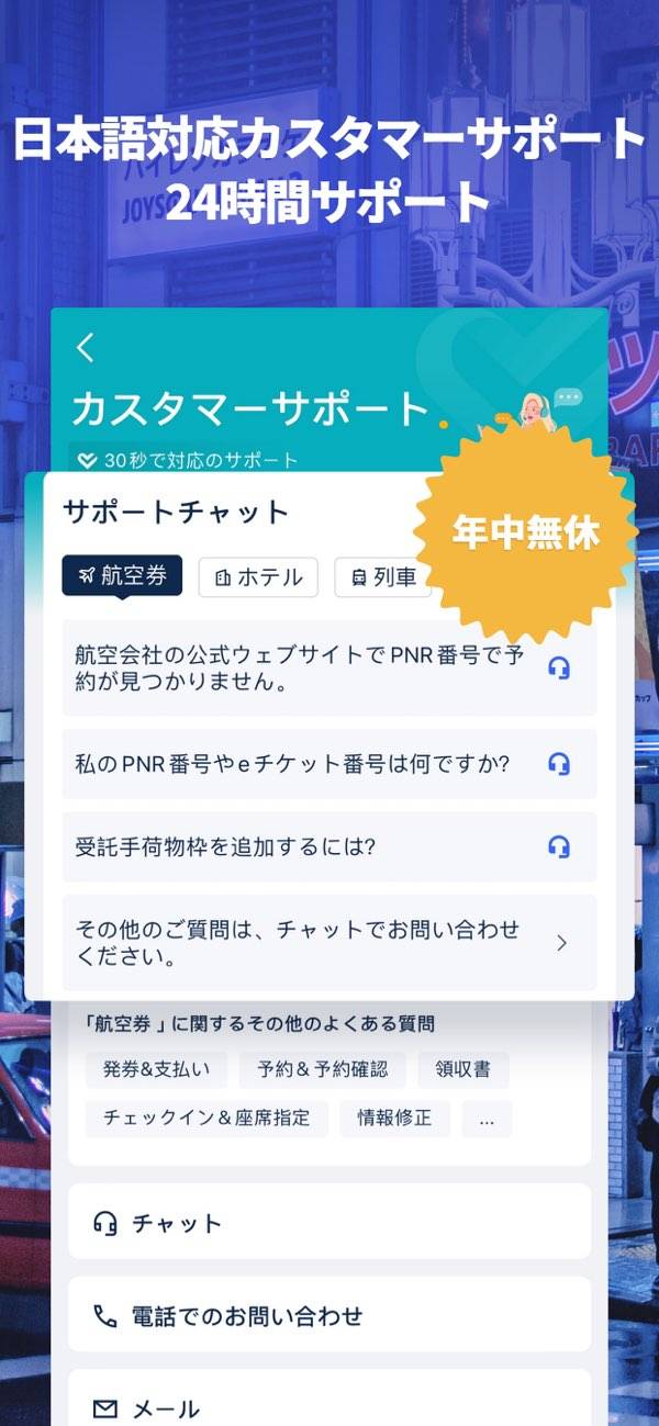 - 航空券、列車、ホテル。これら3種の予約がいつでもできる