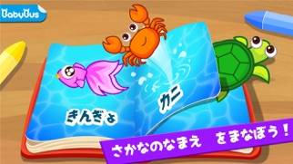 お魚を釣り上げると、パンダがそのお魚の名前を呼び上げてくれます。特徴を捉えた可愛いイラストとパンダの声で、遊びながら自然とお魚の名前を覚えていくでしょう。
