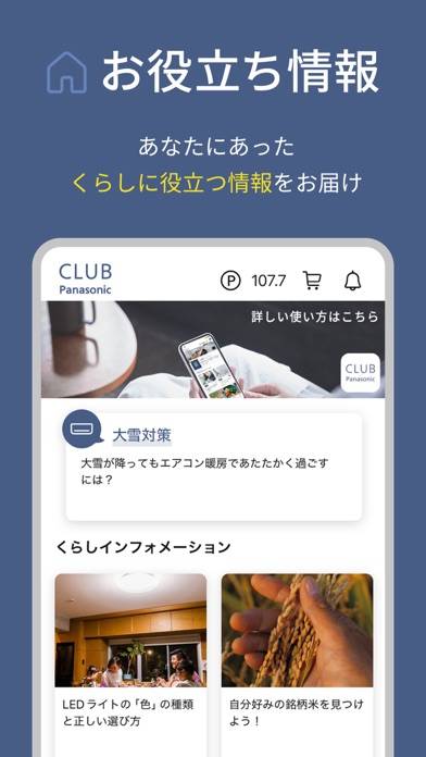 パナソニックのお得な情報を手軽にチェックできます。本アプリではキャンペーンやイベント情報を掲載。参加することで現金のキャッシュバックや電子ギフトを受け取れるなどのチャンスが広がります。便利になるだけでなく、お得になるのも本アプリの魅力です。