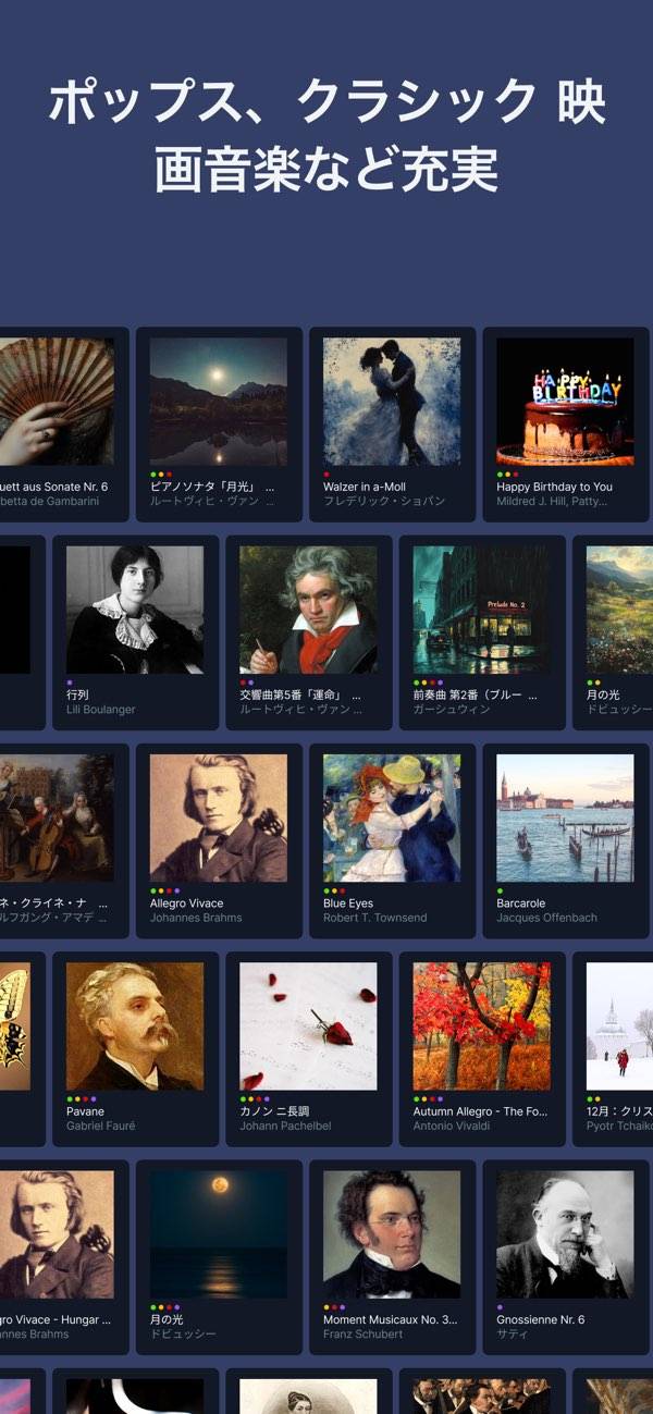 - 定番クラシックから人気のJ-POPまで収録。本格ピアノレッスンアプリ