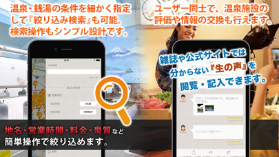 - 銭湯や温泉などの情報がユーザーから集まる、情報共有アプリ