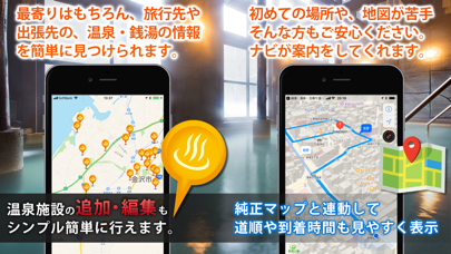 地図アプリと連携でき、ルート案内も利用可能。またマップ上に表示されていない温泉は、自ら追加できます。銭湯好きな方や、旅行先でのひとときを特別にしたい方にぴったりのアプリでしょう。