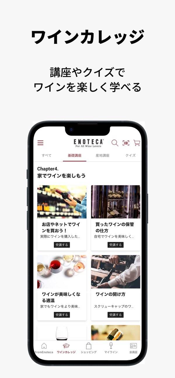 エノテカ公式アプリ 通販のほか、ワインに関する講座・イベント情報も