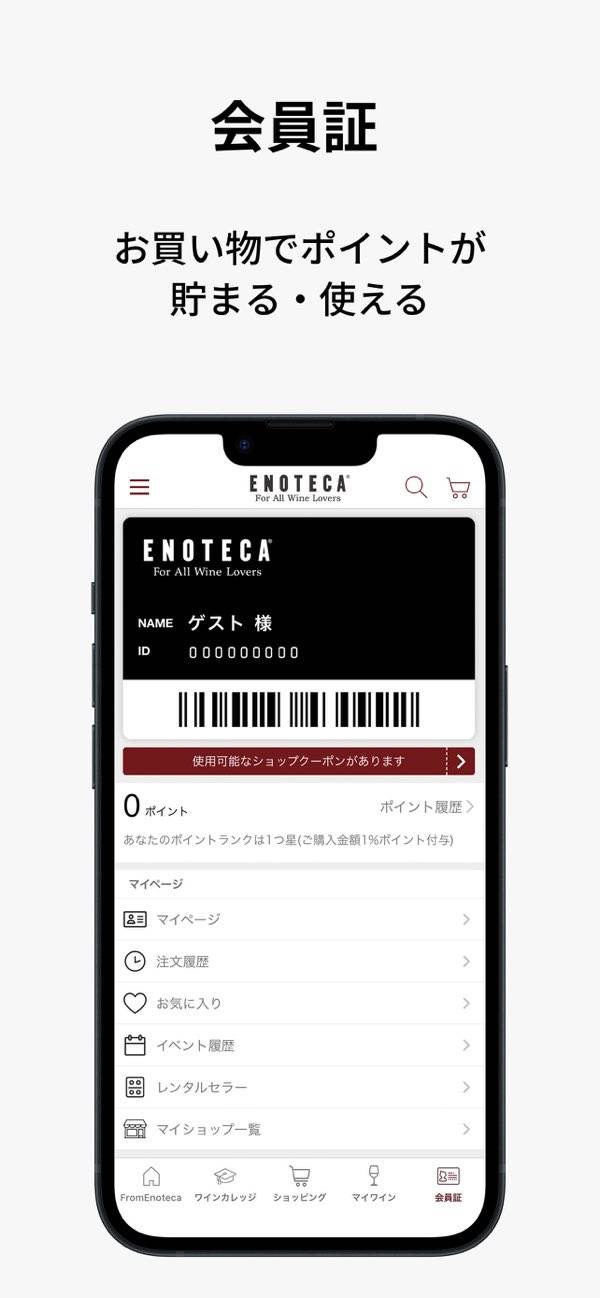 ワイン専門店エノテカの公式アプリで、ショッピングなどが楽しめます。ショップの新情報はもちろん、テイスティングやワイン診断などが開催されるイベント情報を掲載。また、ワインに関する講座やクイズなどもチェックできます。ワイン好きに刺さる内容が目白押しですよ。