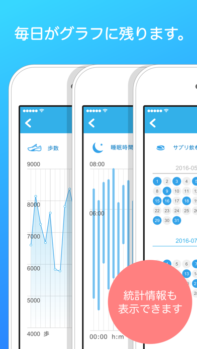 日によって異なる体の変化を、グラフやチャートでチェックできます。統計情報で体の状態を振り返る習慣があれば、変化にも気づきやすくなるでしょう。体を管理することから、健康な生活を送りたい人におすすめです。