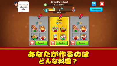 ▲お客様からのオーダー通りの料理を提供すると、コインや経験値が貰える。レベルを上げて、使える施設やレシピを増やそう。