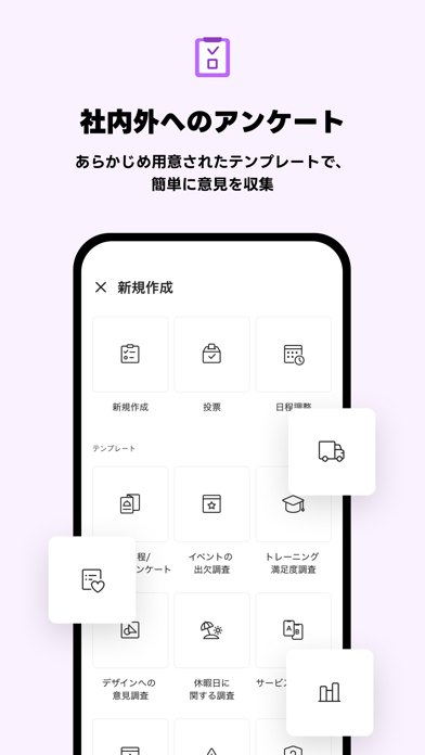 通話やグループチャット機能を搭載しているので、会議もラクラク。柔軟なかたちでコミュニケーションを取れます。スマホ1台あれば利用できるため、環境を選ばず使えるのも強みです。