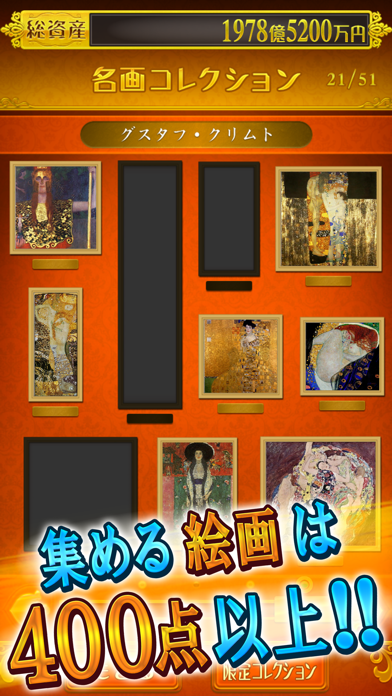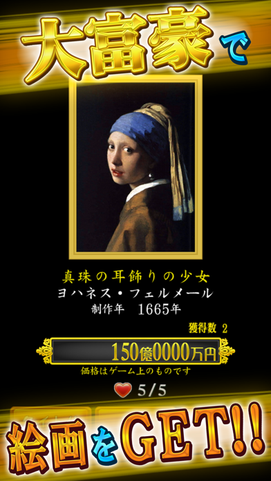 ゲームに勝つと「名画ガチャ」が引けるという、謎のゲーム性が含まれています。一回目に勝利したときに、いきなり「ゴッホの自画像」が出てきて笑いました。