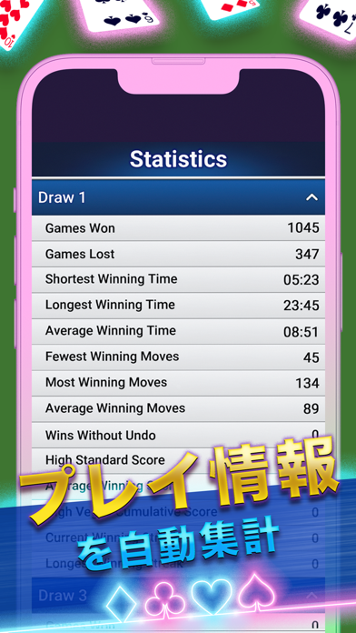 クリアした時間や手数を少なくできると高スコアを記録できます。スコアはランキングになるので、上位を目指してみてください。ソリティアを極めてみてはいかがでしょうか。
