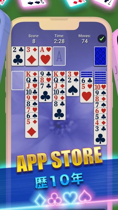 ソリティアのアプリはいろいろ試したけど、デザイン、うざくない演出、すぐ遊べるシンプルさでこれに落ち着きました。