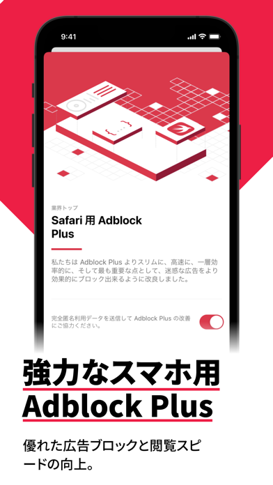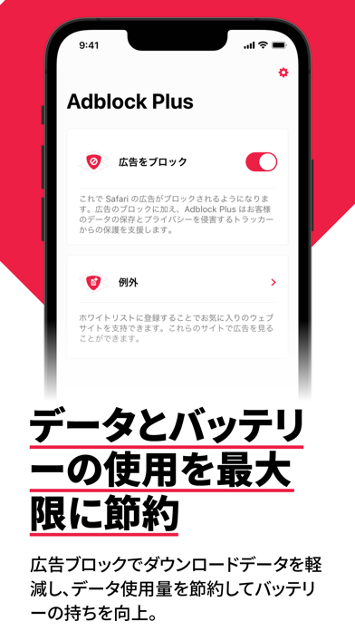 Webブラウザ『Safari』に表示される広告をブロックするアプリです。広告を非表示にすれば、トラッキング行為やウイルス感染を防げます。またスマホのデータとバッテリーを節約したい人にもおすすめ。