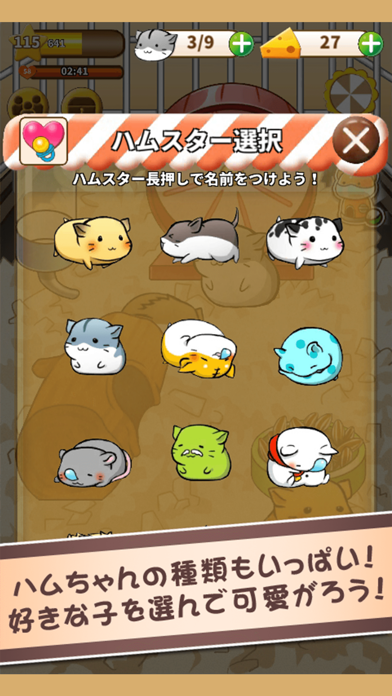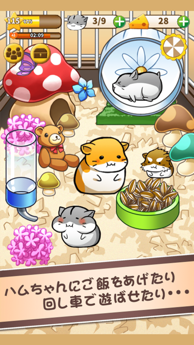 - 色んな種類のハムスターが登場。どんどん増やせば賑やかな小屋になる!