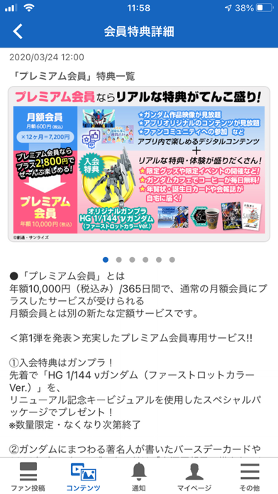 - ガンダムの多彩なコンテンツを配信しているファンクラブアプリ