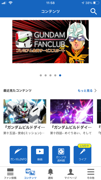 - ガンダムの多彩なコンテンツを配信しているファンクラブアプリ