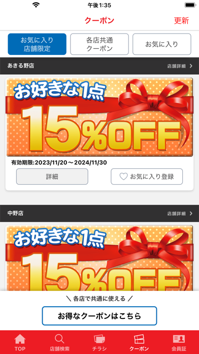 お気に入りの店舗の新商品情報やセール情報などを、通知してくれる機能もあります。よく行く店舗からの情報を逃さずに得ることができ、計画的にお買い物することが可能です。お得な情報を見逃す心配はもうありません。