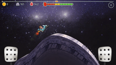 ▲ブレーキとアクセルをタップしてバランスをとり、ゴールを目指そう。赤色のタンクを取ると給油できる。