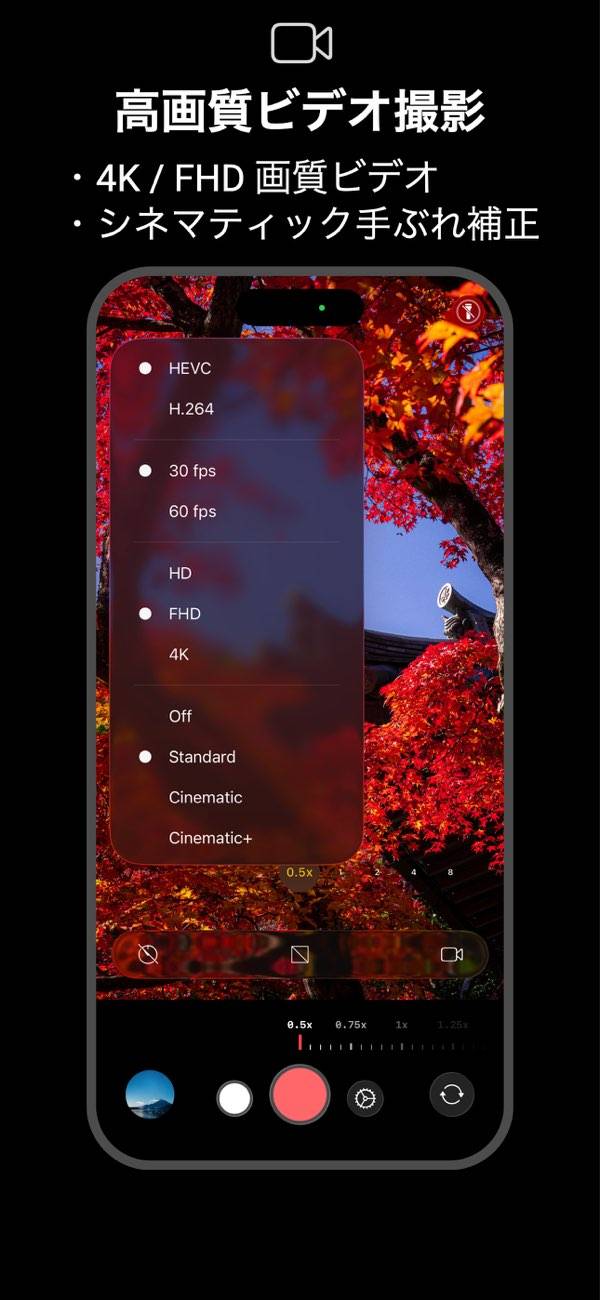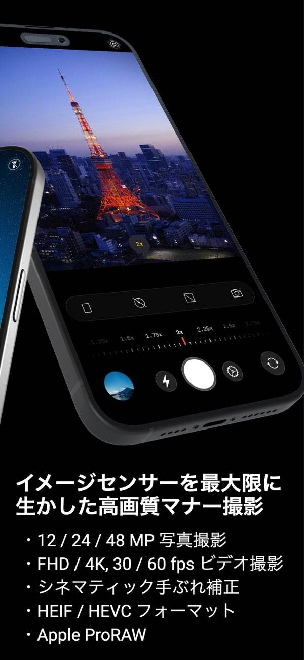 高画質で写真も動画も撮れて、そのまま編集までできる便利なカメラ&編集アプリです。48/24MPの写真や4K動画、シネマティックな手ぶれ補正などに対応しており、いつもの撮影がぐっと雰囲気ある映像に変身。サッと撮って簡単に編集できるので、日常の記録やSNS投稿がもっと楽しくなりますよ。