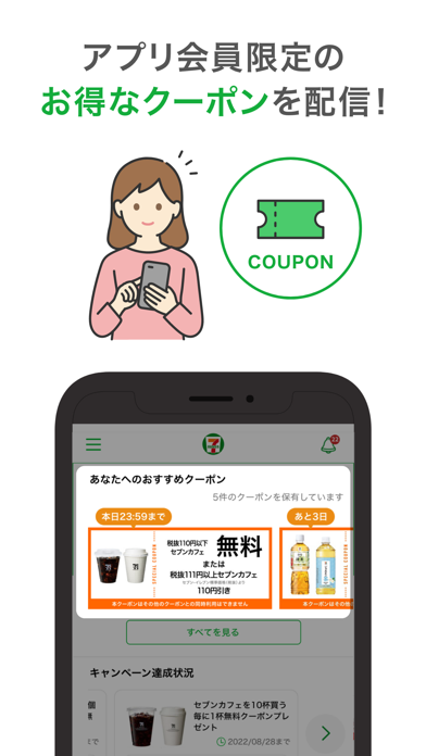 - アプリ限定クーポンで、セブンでの買い物をお得に