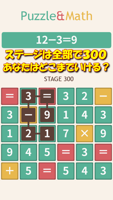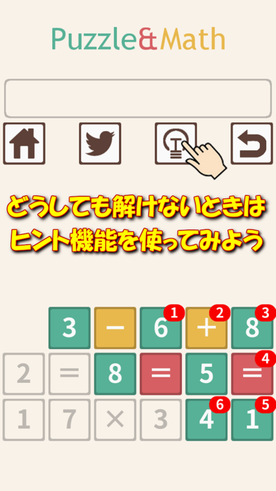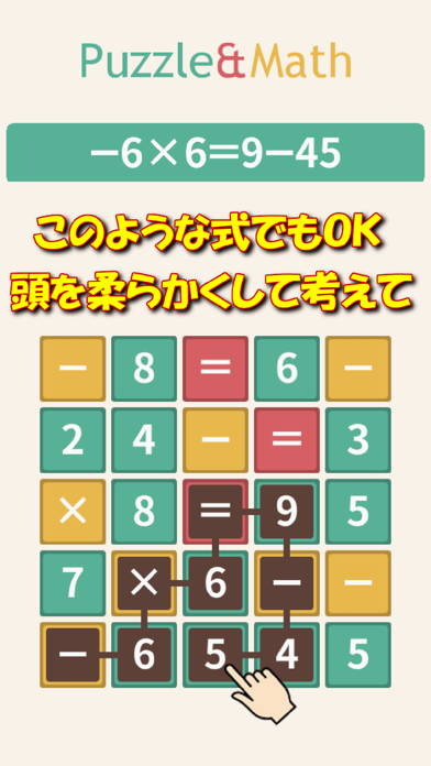 - パネルをなぞって数式を成立させるパズル。簡単そうで頭をひねる