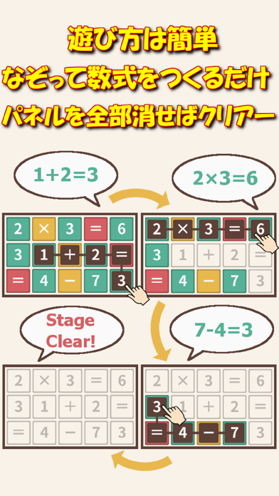 数式が正しくなる様に指でパネルをなぞっていく脳トレゲームです。
