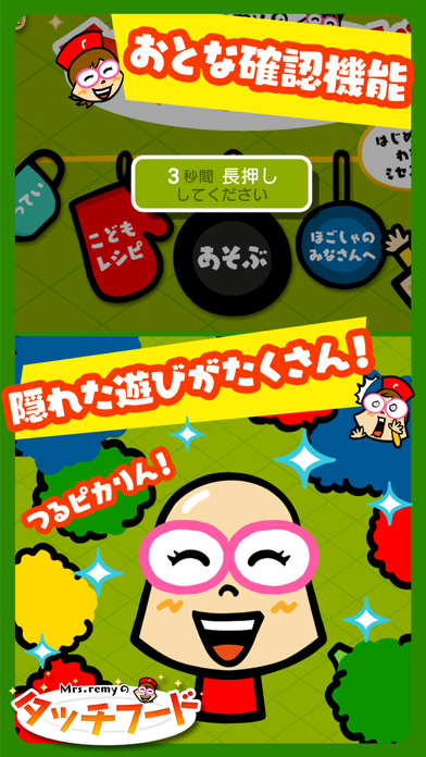 平野レミさんが大好きなのでダウンロードしました。子供向けの食育アプリだけど、大人が見ても楽しめます。手軽にできる料理レシピはレミさんらしい大ざっぱで簡単なものばかりなので参考にしてます。