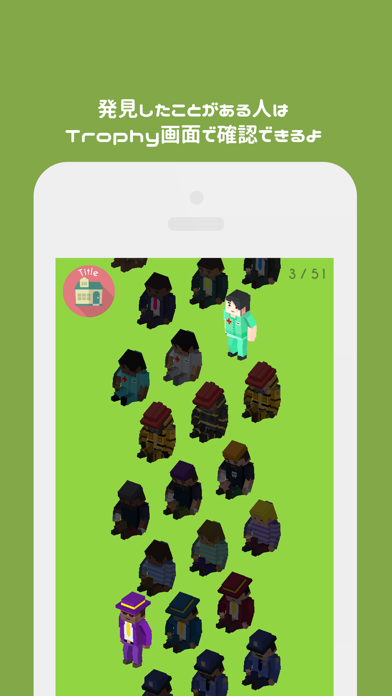 THE・暇つぶしゲーム。コイツを探せって言われたキャラを見つけ出すだけなんだけど、360度全方位にうろちょろ動くので、そう簡単に見つからない。「お前をずっと探してたんじゃー!」とタップしたら、髭だけ色違いだったりしたことも・・・(疲)