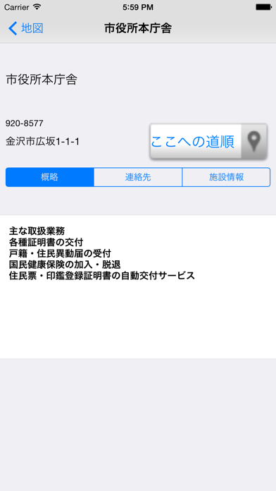 - 施設検索ができ、市役所の電話番号から観光地までこれひとつでわかる