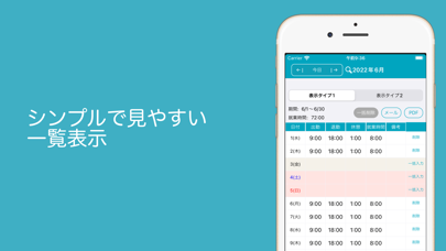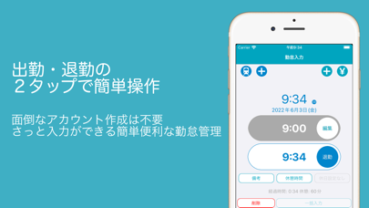 会員登録なしで使えるシンプル勤怠管理アプリです。勤務先の勤怠時間をあらかじめ設定しておけば、出勤と退勤の2タップで簡単シフト登録。