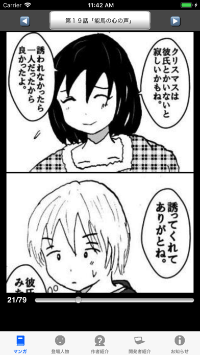 縦スクロールで1コマずつ楽しめる漫画ビューアを採用しています。4コマ風にデザインされたビューアは細部まで丁寧に物語を追うことができ、ストーリーに深く没入できるでしょう。無料ながらとても読み応えがあります。