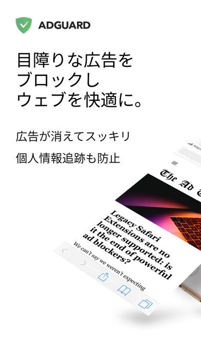 広告をまとめて消すのでブラウジングが快適に。バナー、動画広告、ポップアップなどが対象で、ページ閲覧中の誤タップが防げます。