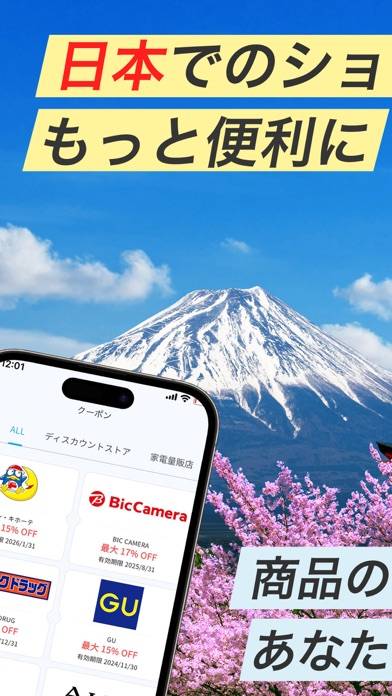 日本のお店で使えるクーポンが掲載されています。ドン・キホーテやBIC CAMERAといった観光客にも人気のショップで使える割引やポイントアップの情報がすぐにチェック可能。旅先でお得に商品をゲットできるので、ショッピングの計画も立てやすくなります。