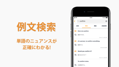 単語の意味や例文を調べられる