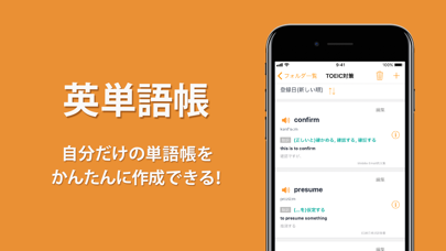 単語をワンタップでリストに追加し、単語帳を作成できます。複数の単語帳を作れるので、TOEIC対策や学校の試験勉強など、目的に合わせて使い分けが可能。見出しで綴りや意味・発音がわかるほか、詳細ページにもスムーズにアクセスできます。