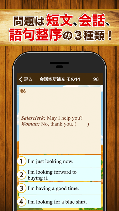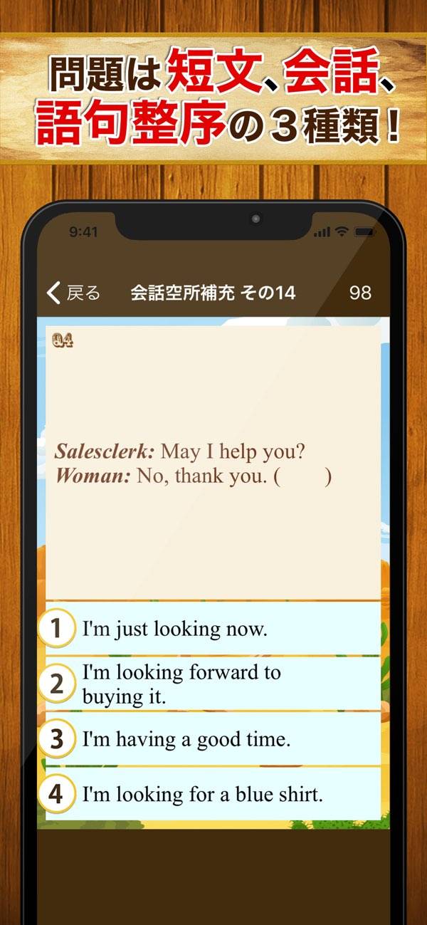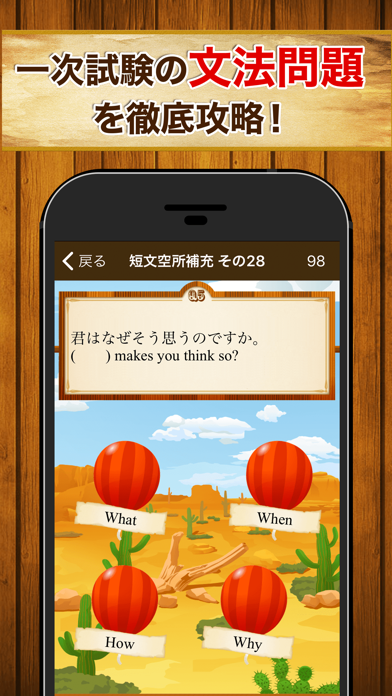 ゲーム感覚で英検対策ができるアプリ。4択の中から正解を選択するクイズ形式です。文法と熟語を重点的に学習。解説もしっかりしており、より深く単語を学べます。1セット10問程度なので、隙間時間の学習に最適。