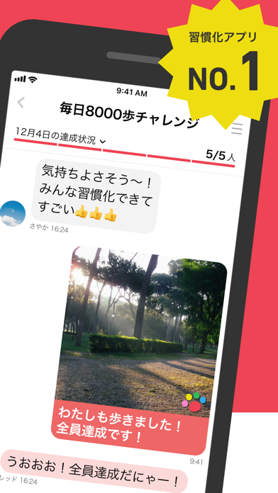 - 5人一組で目標に向かって切磋琢磨。3日坊主を絶対阻止するアプリ