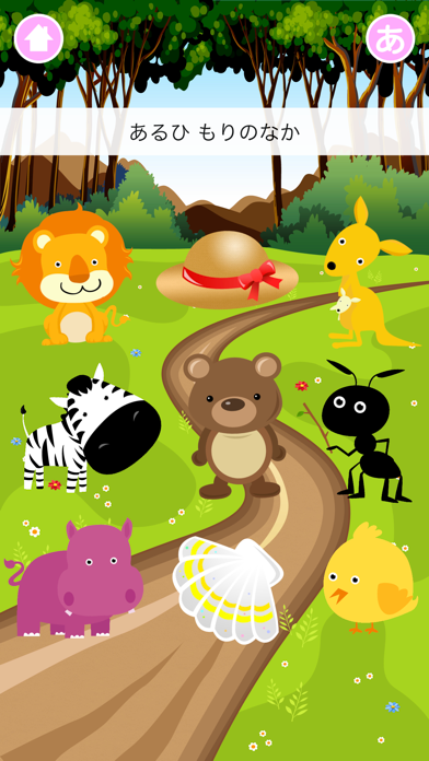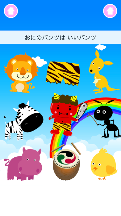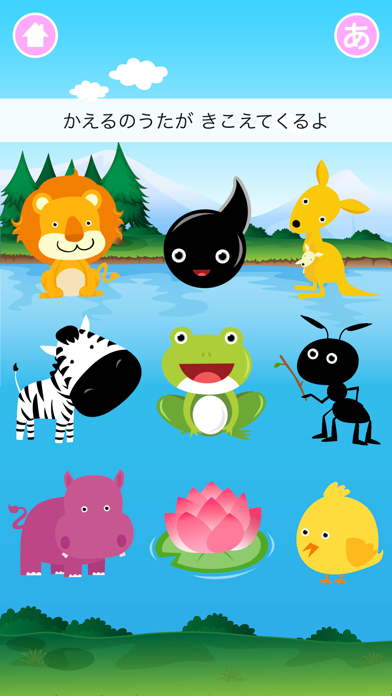 「どんぐりころころ」などの童謡で、リズム遊びが楽しめる知育アプリ。曲を選択すると、童謡のメロディーと共にライオンやヒヨコなどのかわいい動物たちが登場。動物たちにタッチすると、かわいい音と動きで楽しませてくれます。歌詞も表示されるので、子供と一緒に歌ってみるのもいいでしょう。