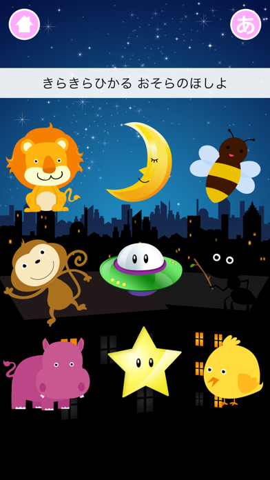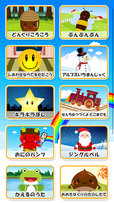 - 童謡に合わせて画面をタップすると、さまざまな音が鳴る知育アプリ