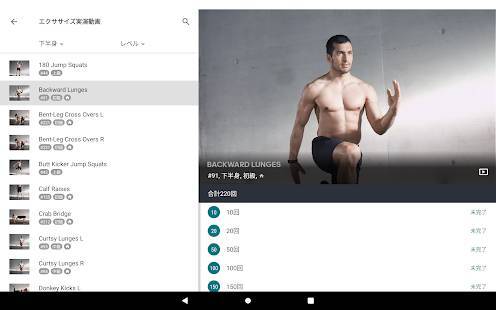 器具を必要としない自重トレーニングをサポートするアプリ。動画で正しいフォームを紹介してくれます。プランを選択する事で、上半身や下半身・腹筋・体幹など重点的なトレーニングが可能。所要時間は数分程度から1時間ほど掛かる本格的なものまであり、自分に合った鍛え方が見つかります。