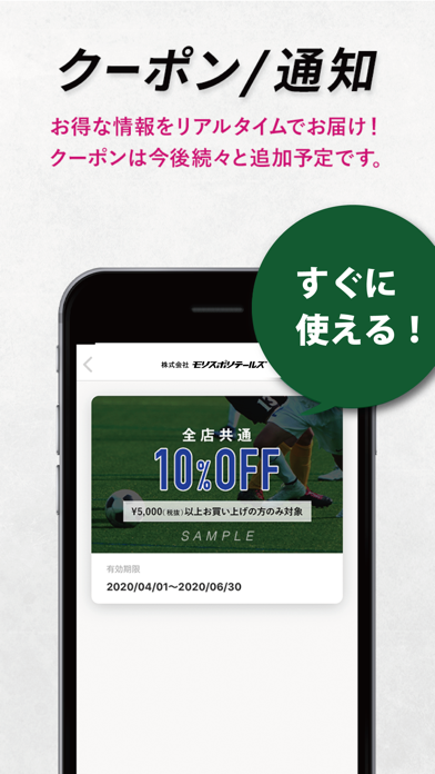 このアプリでは、お得な情報やイベント情報をリアルタイムで確認できます。また、アプリ会員特典や割引クーポンが利用できるので、モリスポグループでのお買い物がよりお得になりますよ。お得な情報は通知で受け取れるので、見逃す心配もありません。
