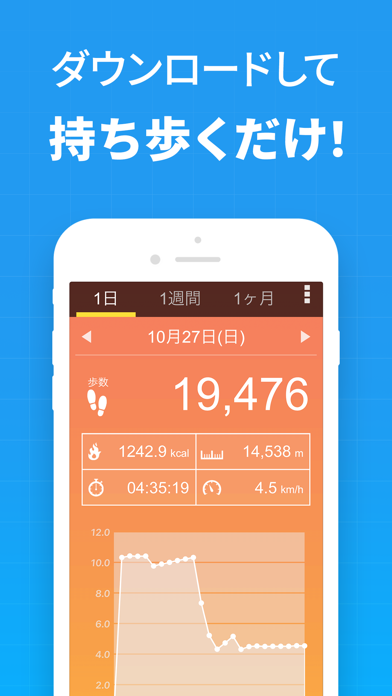 歩行時のみ歩数や移動距離などを計測する歩数計アプリ。端末を振ってもカウントされないため、信頼できるデータを取得できます。「1日」「1週間」「1ヶ月」の3つに分けたグラフが見られるため、継続した時に、自分の頑張りが目に見えて分かるでしょう。