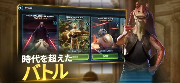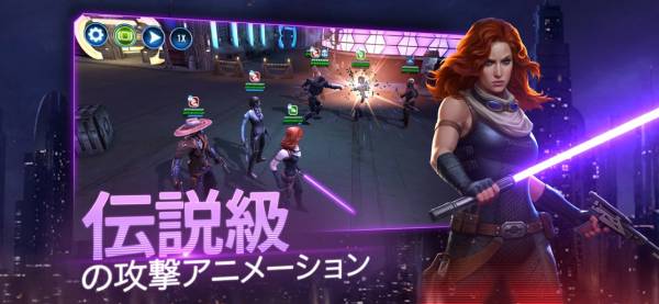 「スター・ウォーズ」のキャラクターを育て、戦わせるというロマンあふれるRPG。キャラクター数がとにかく豊富で、劇場版はもちろん、「クローン・ウォーズ」「反乱者たち」などのスピンオフキャラクターも数多く登場します。