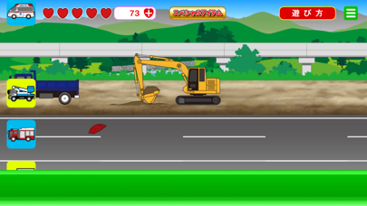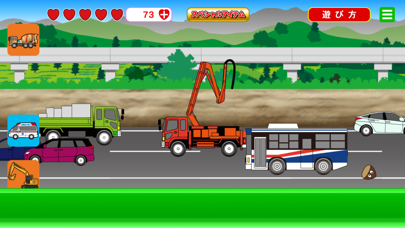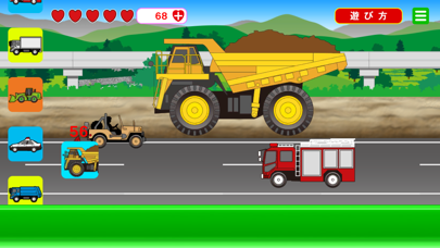 いろいろな車と触れあえる知育アプリ。真っ赤なボディの消防車、力強いショベルカー……車が大好きな子どもは多いです。このアプリは多彩な車が走っている様子を眺められ、タップして動かすことができます。