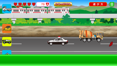 ショベルカーや電車、パトカーが走る道路。それぞれ好きなものをタップして遊べます。タップするとスピードアップしたり、飛び跳ねたり、さまざまな動きを見せてくれます。次はどんな動きを見せてくれるのか気になり、子どもが夢中になってくれるかも。
