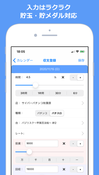 - パチンコ・スロットの収支を、台ごとに記録しておける管理アプリ