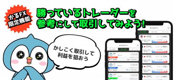 タイムラインでは、ほかのユーザーの取引状況をチェックできます。みんなの予想で「売り」が多いのか「買い」が多いのかチェックしておきましょう。フリートークで交流できる機能もあります。